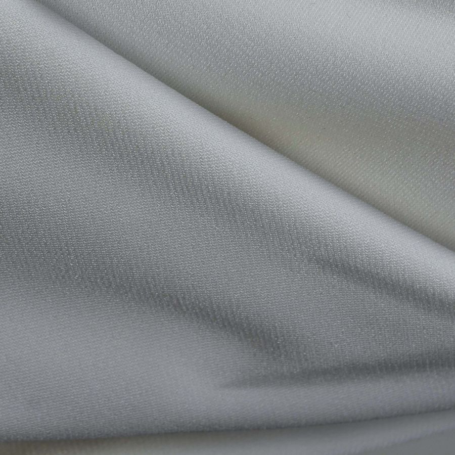 La tela base de este tejido es el Punto Sintético con Spandex - Support, con una composición del 95% de poliéster y el 5% de elastano, lo que le otorga una textura suave al tacto y elástica al estirarla. Esta tela se presenta en un color liso impreso en Gris con una tonalidad de Plata metálica, que se obtiene con una tinta con una mezcla de 22 de cian, 12 de magenta, 15 de amarillo y 0 de negro (CMYK: 22 12 15 0).