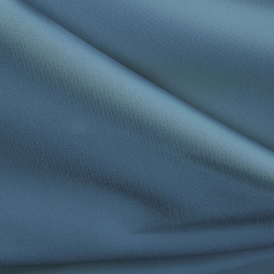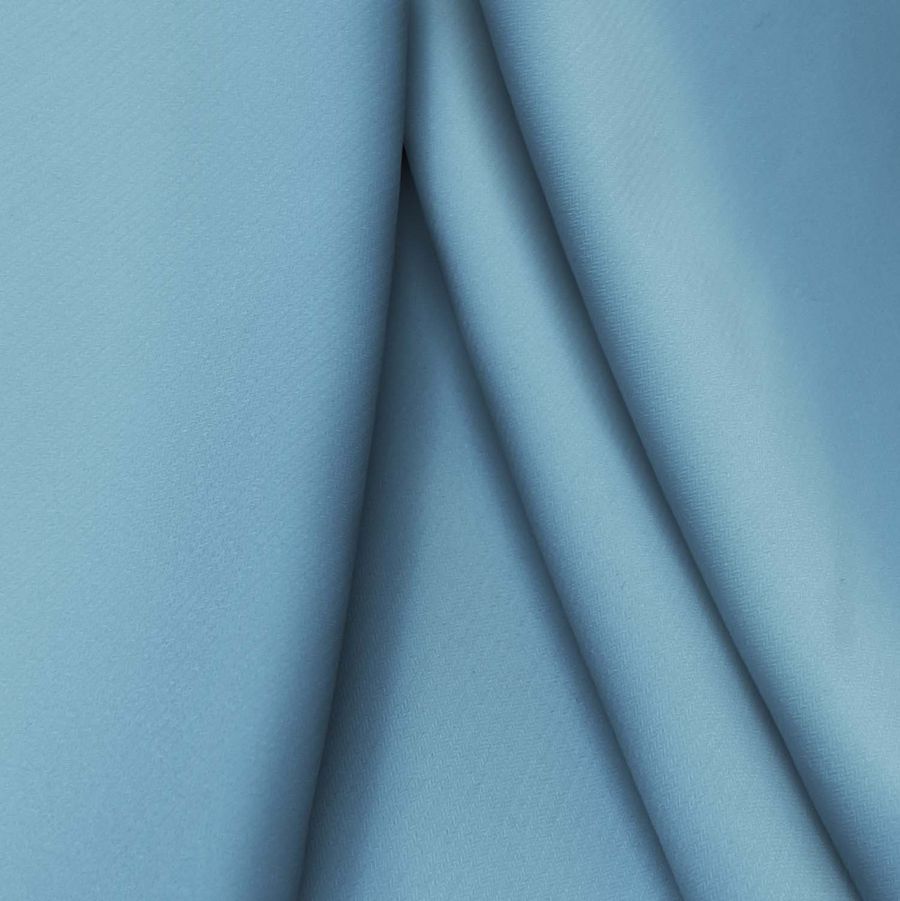 La tela base es el Punto Sintético con Spandex - Support, con una composición de 95% poliéster y 5% elastano, un gramaje de 237 gr/m2 y un ancho de 152cm. El color liso impreso es Azul Koi, con una mezcla de tinta CMYK de 63 en cyan, 32 en magenta, 18 en yellow y 3 en black. Este color secundario se asemeja a un tono azul claro con un matiz verdoso, y combina bien con colores complementarios como el rosa claro y el naranja pastel. Es importante destacar que la tela está impresa con el color liso a una sola cara por impresión digital textil.