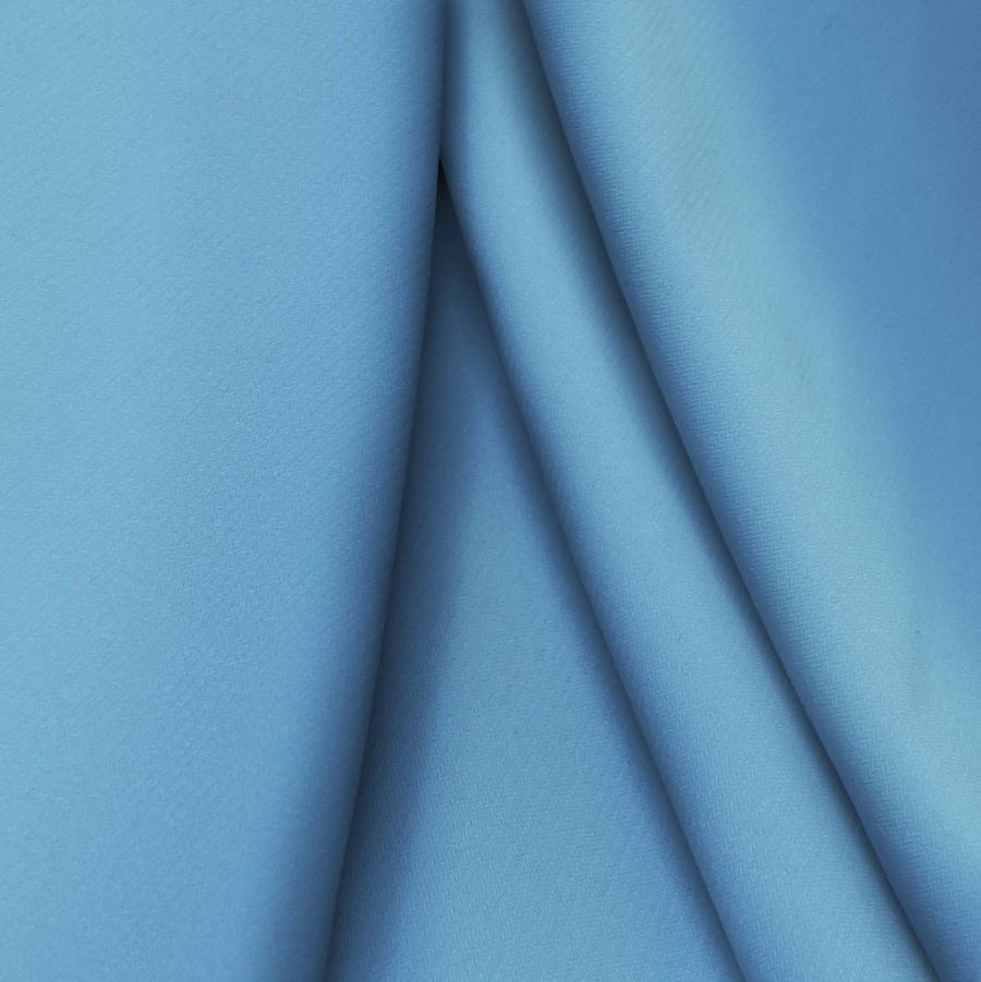 La tela base es Punto Sintético con Spandex - Support, en un color liso impreso de tonalidad Azul seda con contenido de tinta Cyan: 67, Magenta: 36, Yellow: 6 y Black: 0, reflejando un CMYK de 67 36 6 0. Este color secundario es un tono suave y delicado, que combina especialmente con otros tonos pastel como el rosa y el verde agua. La tela está impresa con el color liso a una sola cara por impresión digital textil, lo que permite una mayor precisión en la reproducción del color y un resultado duradero en el tejido.