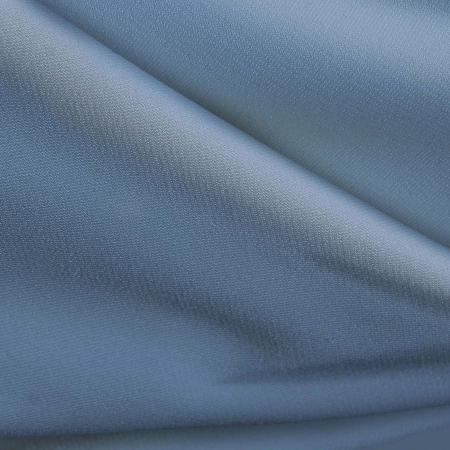 La tela base, Punto Sintético con Spandex - Support, es una tela de punto compuesta por 95% de poliéster y 5% de elastano con un gramaje de 237 gr/m2 y un ancho de 152 cm. El color liso impreso es de un hermoso azul seda cuyos atributos del color indican una tinta cyan de 51, una tinta magenta de 23, una tinta yellow de 5 y una tinta black de 0, representando el CMYK 51 23 5 0. Este color sedoso y elegante combina especialmente bien con tonos cálidos como rosa, melocotón y marfil.