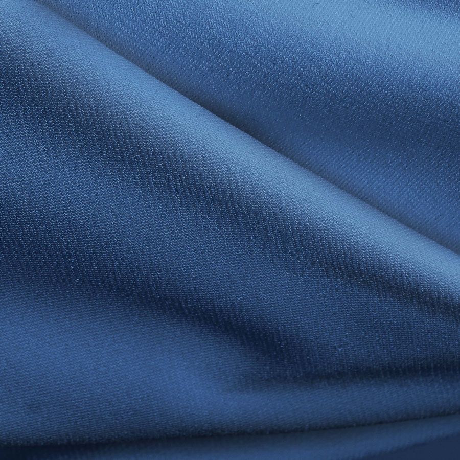 La tela base es una Punto Sintético con Spandex - Support, compuesta en un 95% de poliéster y 5% de elastano, con un gramaje de 237 gr/m2 y una anchura de 152 cm. El color liso impreso es un impresionante azul arrendajo, con una tinta cyan de 89, magenta de 65, yellow de 25 y black de 9, que combinan para crear un CMYK de 89 65 25 9. Este color secundario simboliza la fuerza, la lealtad y la sabiduría, y puede combinarse en particular con tonos grises, amarillos y verdes para resaltar aún más su belleza. Es importante destacar que la tela está impresa con el color liso a una sola cara, mediante impresión digital textil, lo que significa que no es un tejido tintado sino impreso por una sola cara.