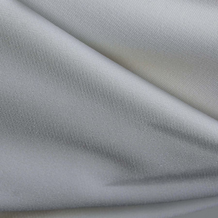 Esta tela base es el Punto Sintético con Spandex - Support, compuesta por un 95% de poliéster y un 5% de elastano, con un gramaje de 237 gr/m2 y un ancho de 152 cm. El color liso impreso es un hermoso azul agua, reflejado en el CMYK de 14 7 6 0. Este color transmite tranquilidad, serenidad y frescura, y combina perfectamente con colores blancos, grises y plateados, aportando luminosidad a cualquier diseño. La tela está impresa con el color liso a una sola cara por impresión digital textil, lo que asegura una alta resolución y nitidez en los diseños.