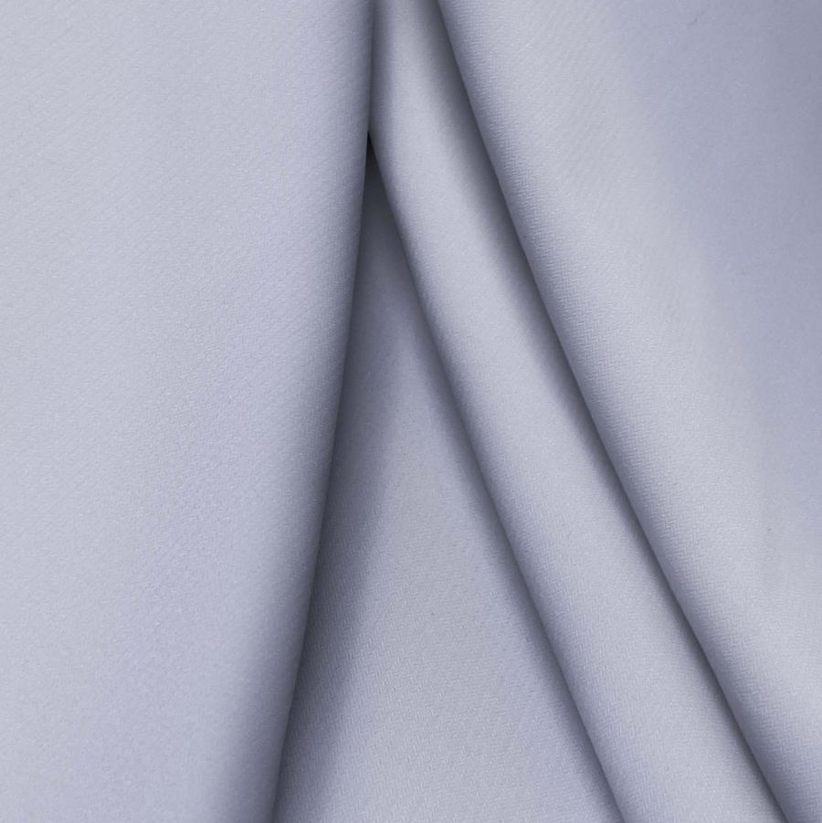 La tela base, Punto Sintético con Spandex - Support, es una tela de punto compuesta por 95% poliéster y 5% elastano, con un gramaje de 237 gr/m2 y un ancho de 152 cm. El color liso impreso en esta tela es una combinación de tonos morado, gris pizarra y azul, con un CMYK de 38 29 9 0. Este color secundario es suave a la vista, opaco al tacto y elástico en caída. Combina especialmente bien con tonos neutros como el blanco, el negro y el gris, aportando un toque sofisticado y moderno.