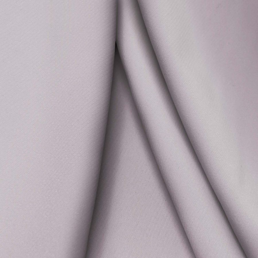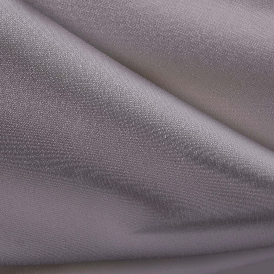 La tela base es el Punto Sintético con Spandex - Support, compuesta por 95% de poliéster y 5% de elastano, tiene un gramaje de 237 gramos por metro cuadrado y un ancho de 152 cm. El color liso impreso es un morado lavanda púrpura con un CMYK de 31 33 22 4, lo que significa que tiene una baja saturación y un balance de cian y magenta con amarillo. Este color se combina perfectamente con otros tonos pastel, gris carbón y rojo intenso.