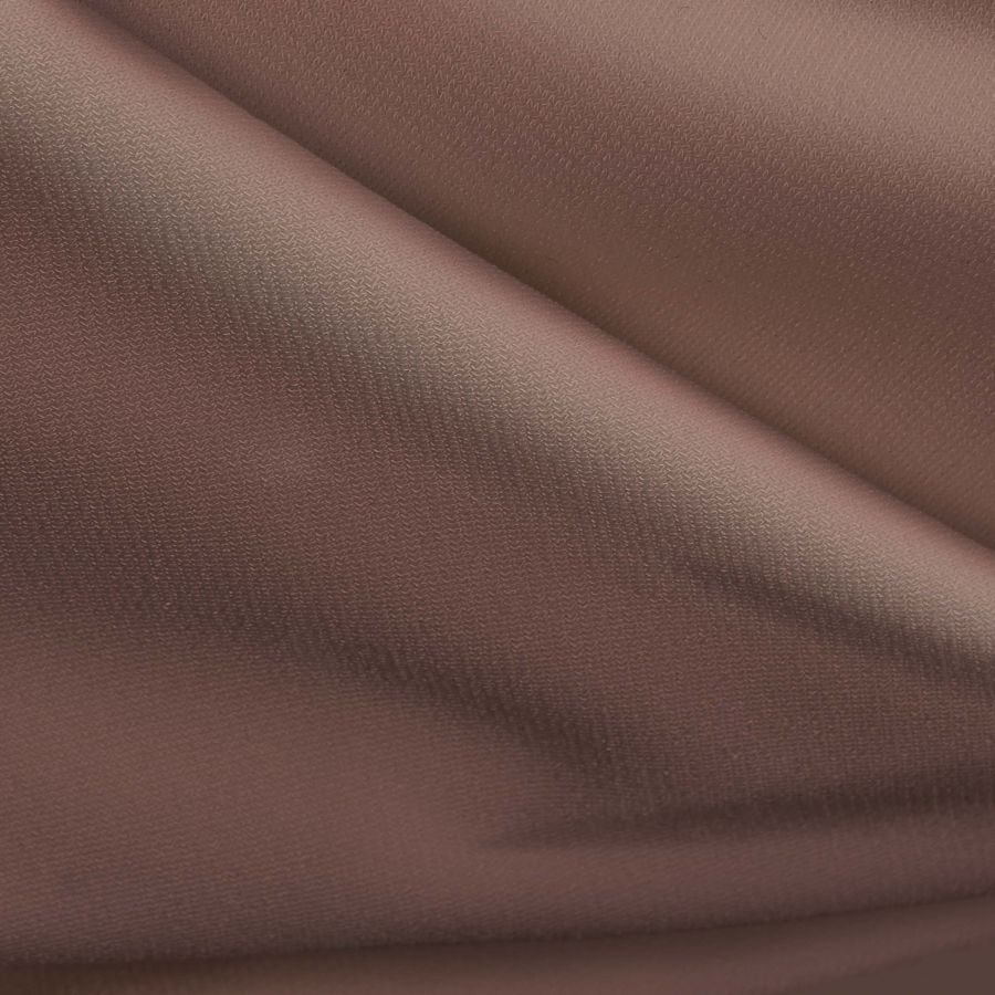 La tela base de este tejido es el Punto Sintético con Spandex – Support, compuesta en un 95% de poliéster y un 5% de elastano, con un gramaje de 237 gr/m2 y un ancho de 152 cm. El color liso impreso en esta tela es un tono marrón-castaña, cuyo CMYK es 29 51 48 22, que se caracteriza por sus tonalidades cálidas y tierra.