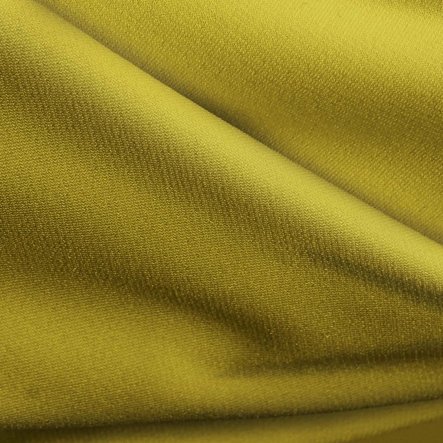 La tela base es el Punto Sintético con Spandex - Support, compuesta por 95% Poliéster y 5% Elastano, con un gramaje de 237 gr/m2 y ancho de 152 cm. Su color liso impreso es una combinación de verde y avellana con valores de tinta cyan 35, magenta 33, yellow 100 y black 18 en el modelo de color CMYK. El color secundario aporta un toque de frescura y naturalidad que combina muy bien con tonos neutros como gris, blanco y negro, y también con matices rosados, azulados y morados. El tejido está impreso con el color liso a una sola cara por impresión digital textil, lo que garantiza una alta resolución y definición en el diseño.