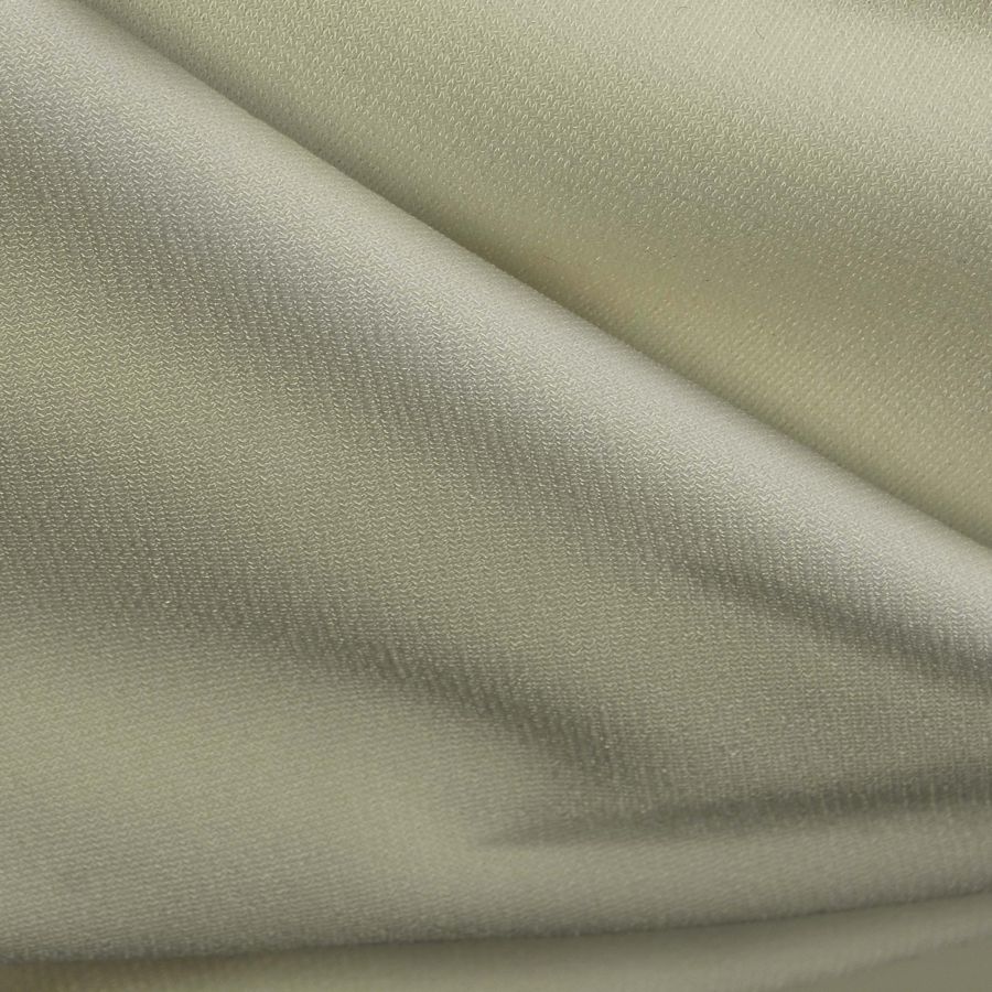 La tela base es el Punto Sintético con Spandex - Support, compuesta en un 95% de poliéster y un 5% de elastano, de gramaje 237 gr/m2 y ancho de 152 cm. El color liso impreso es de tonalidad Crudo y PaleGoldenRod, con una composición en CMYK de 12, 6, 33, 0. El color secundario PaleGoldenRod es un tono amarillo pálido con un matiz dorado, que combina especialmente bien con colores terrosos como el marrón y el verde oliva, así como con tonos neutros grises y blancos. El tejido está impreso con el color liso a una sola cara por impresión digital textil.
