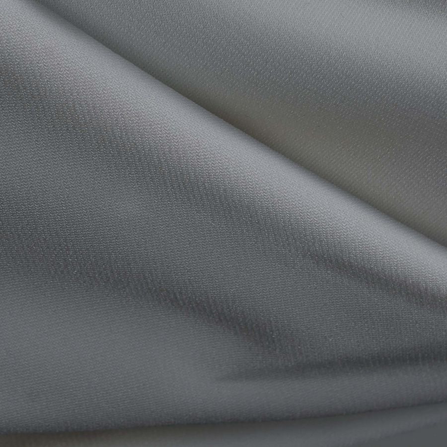 La tela base es el Punto Sintético con Spandex - Support, compuesta por 95% poliéster y 5% elastano, con un gramaje de 237 gr/m2 y un ancho de 152 cm. El color liso impreso es Gris Platino, con una mezcla de tintas Cyan: 43, Magenta: 32, Yellow: 31 y Black: 9, dando como resultado un CMYK de 43 32 31 9. Este color rememora la elegancia y sofisticación del metal platino, con una textura opaca y suave al tacto. Se combina perfectamente con otros tonos grises más oscuros, blancos y negros.