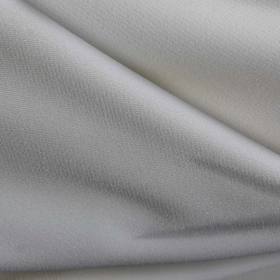 La tela base es el Punto Sintético con Spandex - Support, con una composición del 95% de poliéster y 5% de elastano, y un gramaje de 237 gr/m2. El color liso impreso es de tonos gris platino con una combinación de tintas de CMYK 13 9 9 0. Este color secundario es una mezcla de gris claro y plata que irradia elegancia y sofisticación. Este tono se combina perfectamente con colores pálidos y tonos satinados para un diseño moderno y minimalista. La tela base está impresa con el color liso a una sola cara por impresión digital textil, y no es tejido tintado, sino impreso por una sola cara.