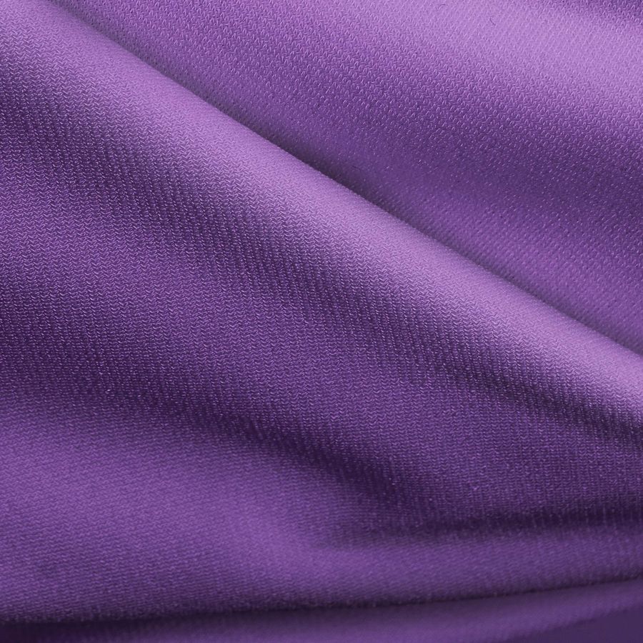 La tela base, Punto Sintético con Spandex - Support, tiene una composición de 95% poliéster y 5% elastano, un gramaje de 237 gr/m2 y un ancho de 152 cm. Presenta un color liso impreso de morado iris, con un CMYK de 66 80 6 0. Esta tonalidad se caracteriza por ser cálida e intensa, evocando sensaciones de misterio y sofisticación. Combina a la perfección con tonalidades más cálidas como rosas, rojos y naranjas, así como con tonos más neutros como blancos, grises y negros.