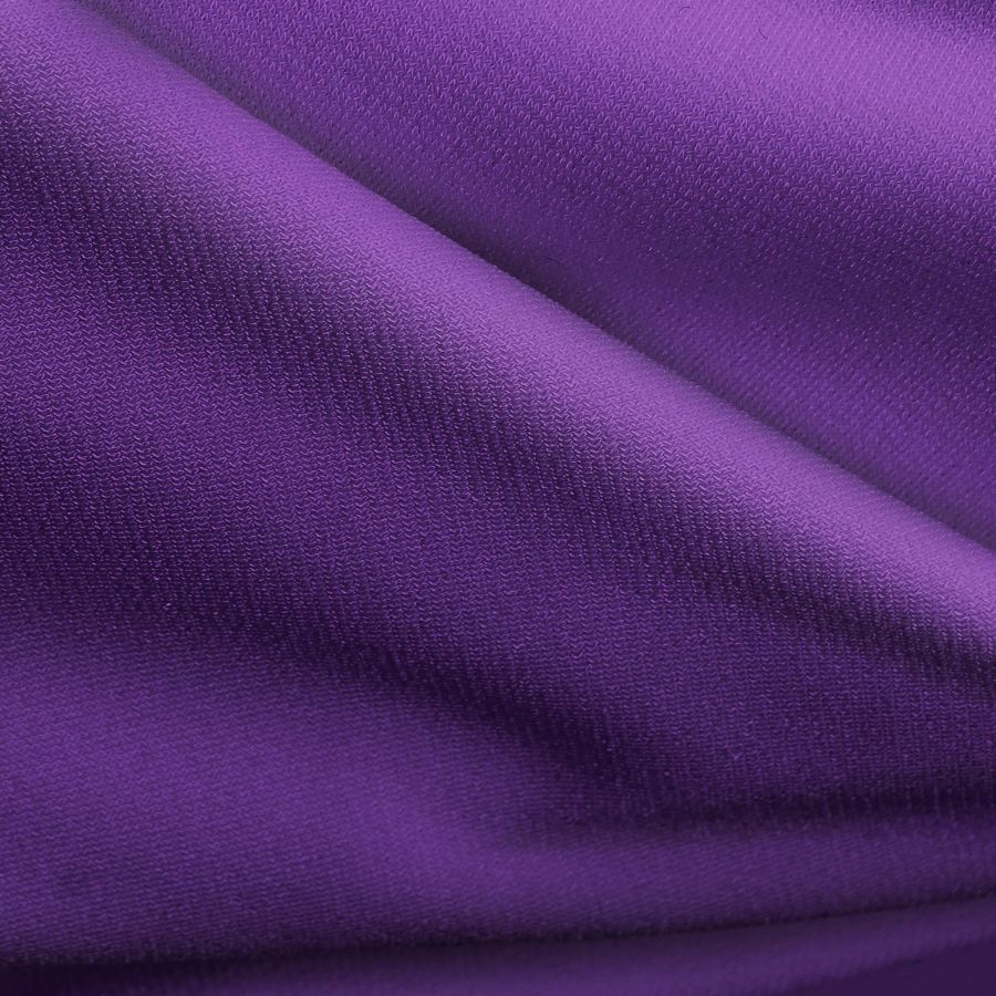 El Punto Sintético con Spandex - Support es una tela de punto de 237 gr/m2, compuesta por un 95% de poliéster y un 5% de elastano, con un ancho de 152 cm. El color liso impreso es un vibrante tono morado-índigo-iris, cuyo contenido de CMYK es 82 100 11 3. La tela tiene una textura suave, opacidad visual y elástica al tacto. El color primario morado intenso se combina con tonos azules, verdes y rosados para crear una paleta atractiva y versátil. La tela está impresa por una sola cara mediante impresión digital textil.