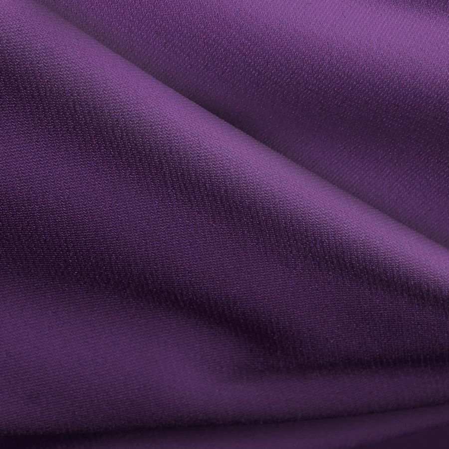 La tela base es el Punto Sintético con Spandex - Support, con una composición de 95% POLIÉSTER y 5% ELASTANO, un gramaje de 237 gr/m2 y un ancho de 152 cm. El color liso impreso es Morado oscuro, con un CMYK de 81 100 32 30. Este color es intenso y profundo, con una tonalidad cálida que transmite elegancia y sofisticación. Combinado con tonos beige o marrones, crea una sensación de equilibrio y armonía, mientras que con tonos verdes o azules, crea un contraste vibrante y atractivo.