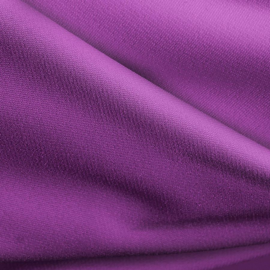 La tela base es el Punto Sintético con Spandex - Support, con una composición del 95% de poliéster y un 5% de elastano, que le aporta una gran elasticidad y confort. Su gramaje es de 237 gr/m2 y tiene una anchura de 152 cm. El color liso impreso es Morado con Flor Purpura, con un contenido de tinta de 56 en Cyan, 89 en Magenta, 2 en Yellow y 0 en Black, lo que da un valor de CMYK de 56 89 2 0.
