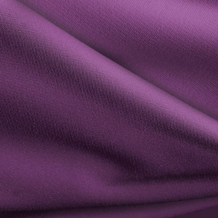 La tela base de este tejido es el Punto Sintético con Spandex - Support, compuesta por 95% POLIÉSTER y 5% ELASTANO, de un gramaje de 237 gr/m2 y un ancho de 152 cm. El color liso impreso en este tejido es Morado oscuro con un CMYK de 67 90 30 23. Este color es un tono profundo y enigmático que combina perfectamente con tonos neutrales, como el blanco y el negro, así como con tonos más brillantes como el rosa o el oro.