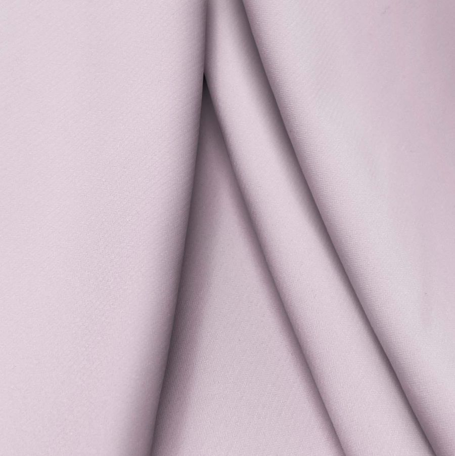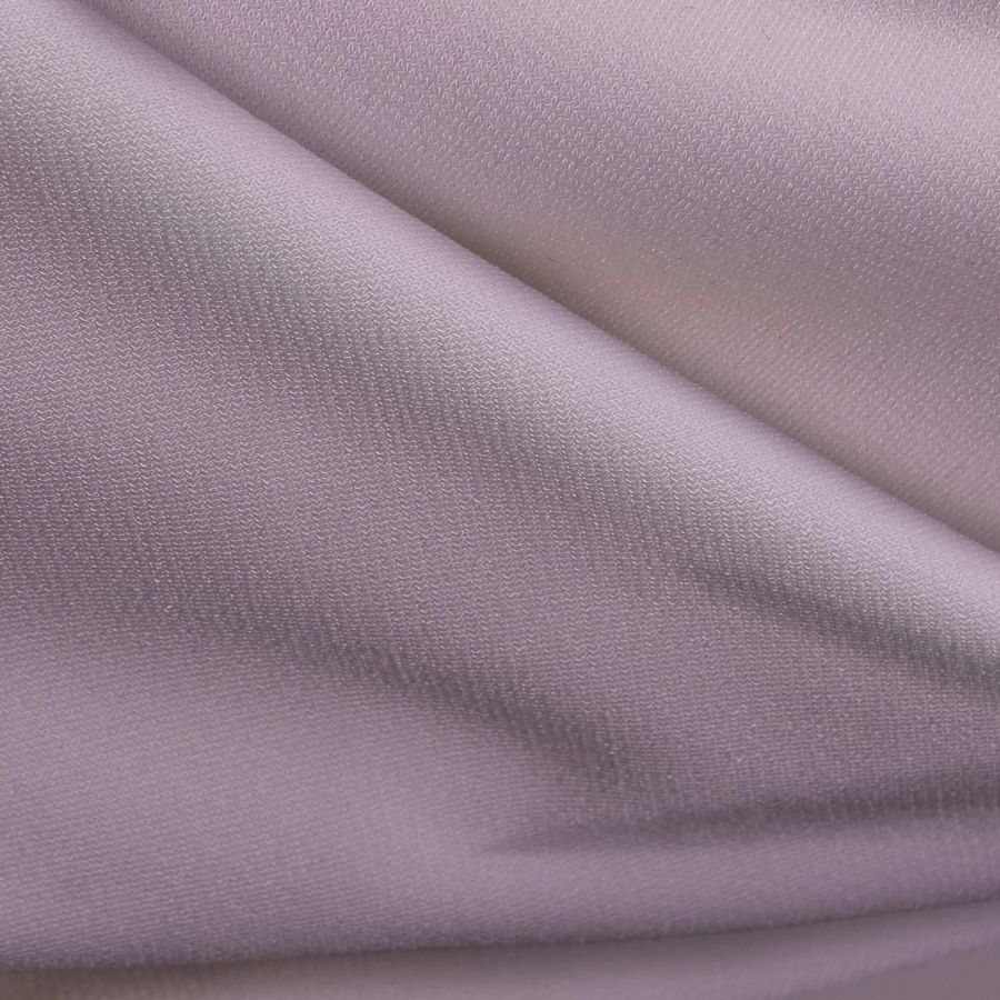 La tela base, Punto Sintético con Spandex - Support, tiene una composición de 95% poliéster y 5% elastano, con un gramaje de 237 gr/m2 y un ancho de 152 cm. El color liso impreso, Morado-Bígaro, tiene un CMYK de 9 27 3 0. Este color se caracteriza por ser un tono intermedio entre el morado y el rosa viejo, dando una sensación de dulzura y romanticismo. Al combinarlo con colores fríos, como los tonos azulados, se logra un contraste armonioso y elegante.