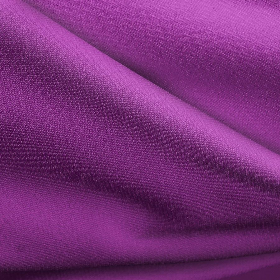 El Punto Sintético con Spandex - Support es una tela de punto con una composición de 95% POLIÉSTER y 5% ELASTANO, con un gramaje de 237 gr/m2 y un ancho de 152 cm. Su color impreso es un Morado-Púrpura que presenta un CMYK de 58 95 2 0, lo que indica que está compuesto principalmente por tinta magenta y cyan. Este color tiene una simbología asociada con la creatividad, prosperidad y espiritualidad. Combina especialmente bien con tonos amarillos y anaranjados.