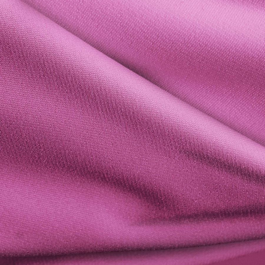 La tela base Punto Sintético con Spandex - Support tiene un gramaje de 237 gr/m2 y una composición de 95% poliéster y 5% elastano, con una anchura de 152 cm. El color liso impreso en este tejido es una combinación de rosa y ciruela rosa con un CMYK de 22 74 5 0. Este color es vibrante y llamativo, lo que lo hace perfecto para prendas de ropa de moda que buscan destacar entre la multitud. Se combina muy bien con tonos neutros, como el negro o el gris.