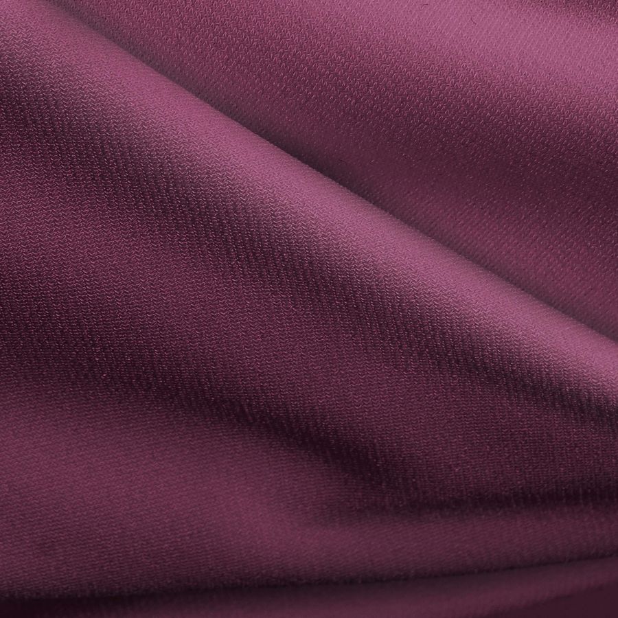 El Punto Sintético con Spandex - Support es un tejido de punto con una composición del 95% de poliéster y un 5% de elastano. El gramaje de este tejido es de 237 gr/m2 y su ancho es de 152 cm. El color liso impreso en este tejido es de un Morado Berenjena, con una combinación de tintas CMYK de 50 87 39 47 (Cian, Magenta, Amarillo y Negro respectivamente). Este color es profundo y elegante, y resulta ideal para la fabricación de prendas de lencería, moda y deporte.