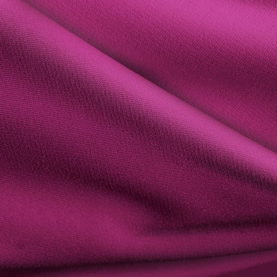 La tela base es Punto Sintético con Spandex - Support, con una composición de 95% poliéster y 5% elastano, un gramaje de 237 gr/m2 y un ancho de 152 cm. El color liso impreso es de un morado oscuro, con un CMYK de 40 100 26 25, lo que indica una alta presencia de magenta y un toque de cyan y amarillo para crear un tono oscuro y vibrante. Este color combina muy bien con otros tonos de púrpura, rosa oscuro y azul marino.