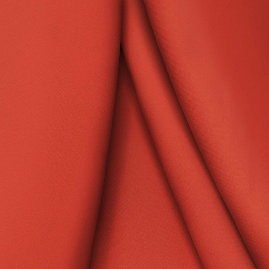 La tela base es el Punto Sintético con Spandex - Support, una tela de punto compuesta por un 95% de poliéster y un 5% de elastano con un gramaje de 237 gr/m2 y un ancho de 152 cm. El color liso impreso es Rojo Toronja, cuyo CMYK es de 16 87 84 6. Este color es vibrante y alegre, con un tono rojizo con matices anaranjados. Combina muy bien con tonos neutros y tierra, así como con tonos verdes y azules.