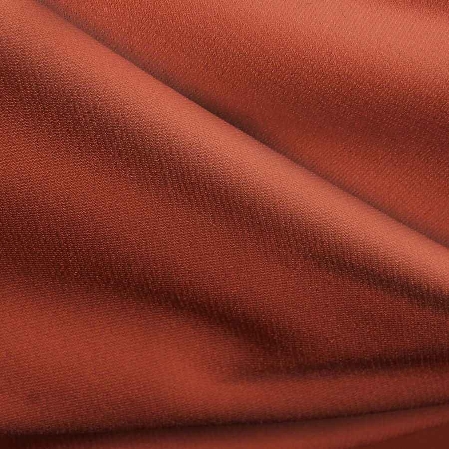 La tela base es un Punto Sintético con Spandex - Support, compuesta en un 95% de poliéster y un 5% de elastano, con un gramaje de 237 gr/m2 y un ancho de 152 cm. Su color liso impreso presenta un tono rojo oscuro con un CMYK de 27 85 92 28, combinando bien con colores como el blanco, negro o gris. Impreso a una sola cara por impresión digital textil, la tela destaca por su textura suave, visualmente opaca y elástica.