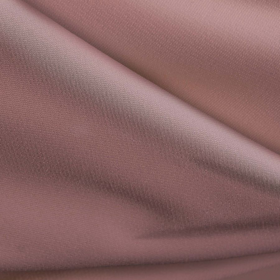 La tela base es el Punto Sintético con Spandex - Support, compuesta por un 95% de poliéster y un 5% de elastano, con un gramaje de 237 gr/m2 y un ancho de 152 cm. El color liso impreso es una combinación de rosa y marrón, con un contenido de tinta de 13 cyan, 46 magenta, 33 yellow y 2 black, según el modelo de color CMYK. Este tono de rosa marrón combina especialmente bien con tonos tierra y neutros.
