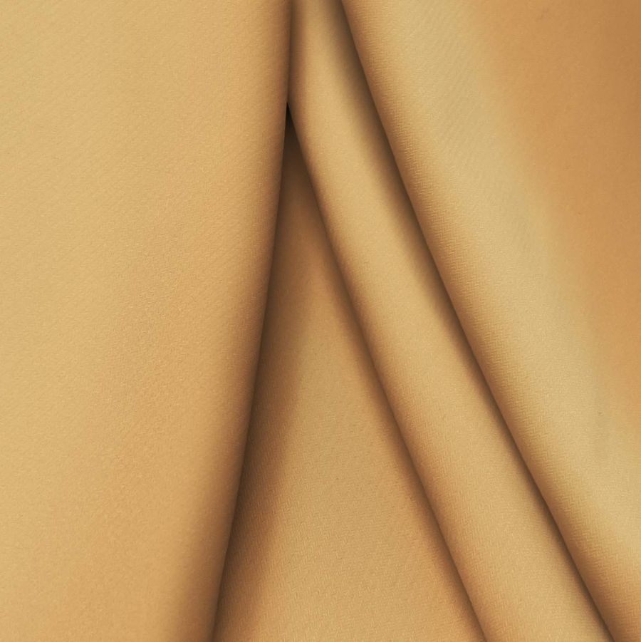La tela base es el Punto Sintético con Spandex - Support, compuesta en un 95% por POLIÉSTER y un 5% por ELASTANO, con un gramaje de 237 gr/m2 y un ancho de 152 cm. El color liso impreso en esta tela es el Naranja Cantalupo, con un contenido de CMYK 13 45 67 2, lo que nos indica una presencia predominante del amarillo y el magenta, junto con una ligera cantidad de cian y negro.