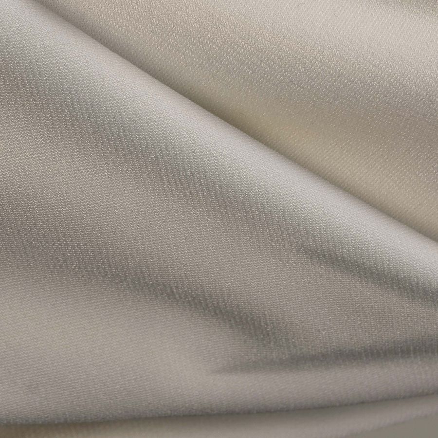 La tela base, Punto Sintético con Spandex - Support, es una tela de punto con una composición del 95% de poliéster y un 5% de elastano, con un gramaje de 237 gr/m2 y un ancho de tela de 152 cm. El color liso impreso en esta tela es un blanco marfil suave, con una combinación de tintas cian, magenta y amarilla, y un total de 4, 9 y 18 respectivamente en el CMYK. Este color evoca una sensación de calma y tranquilidad y combina muy bien con otros tonos pastel y neutros.