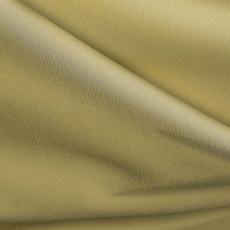 La tela está impresa con el color liso a una sola cara por impresión digital textil, lo que significa que el color solo está presente en una de las caras del tejido y no se ha tintado. La tela base se distingue por su suavidad al tacto, elasticidad y opacidad visual, lo que la hace ideal para prendas ajustadas al cuerpo. Estas características combinadas con el color amarillo sol impreso, crean una apariencia moderna y llamativa.