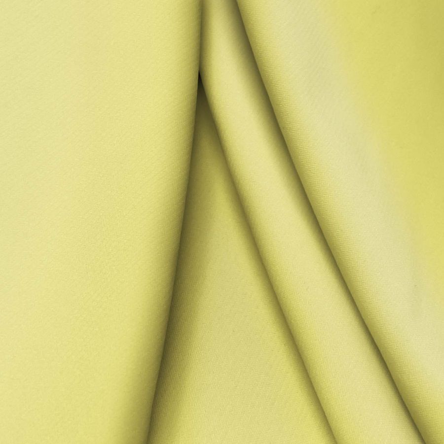 La tela base de este tejido es el Punto Sintético con Spandex - Support, compuesto por un 95% de poliéster y un 5% de elastano, con un gramaje de 237 gr/m2 y un ancho de 152 cm. El color liso impreso es un amarillo maíz, con una combinación de tintas de cian, magenta, amarillo y negro, siendo este último cero. Este color se caracteriza por ser vibrante, alegre y lleno de energía, evocando el sol y la alegría del verano. Es combinable con colores como el blanco, gris, negro y tonos pastel para dar un look más fresco y suave.