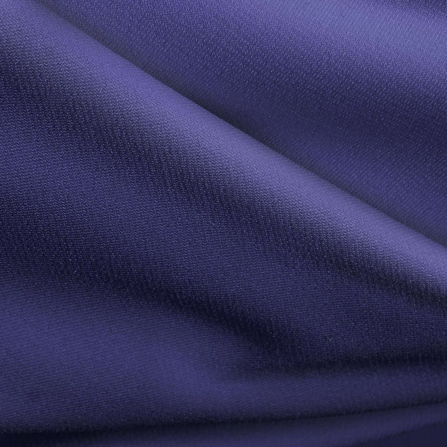 La tela base es un Punto Sintético con Spandex - Support, compuesta por un 95% de poliéster y un 5% de elastano, con un gramaje de 237 gr/m2 y un ancho de 152 cm. El color liso impreso es de un tono Morado Noche Azul, con un CMYK de 94 89 28 19, siendo un color opaco, seductor y equilibrado entre tonos cálidos y fríos. Este color puede combinarse especialmente bien con tonos azules, verdes y grises.