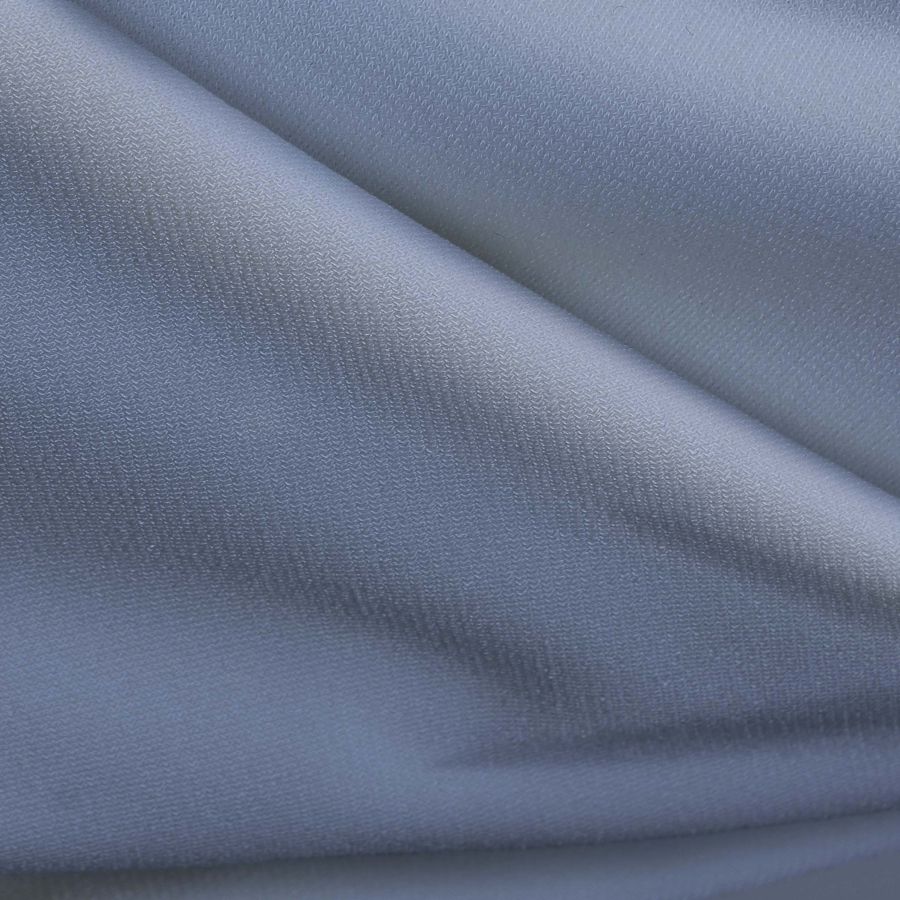 La tela Punto Sintético con Spandex - Support es una tela de punto compuesta por un 95% de poliéster y un 5% de elastano, con un gramaje de 237 gr/m2 y un ancho de 152 cm. Su color liso impreso es un tono azul aciano, con un CMYK de 42 25 3 0. Este color evoca tranquilidad y serenidad, aportando frescura y luminosidad al tejido. Su tono secundario, el cian, es un color frío que se combina muy bien con tonos de azul más oscuros, verdes y grises.