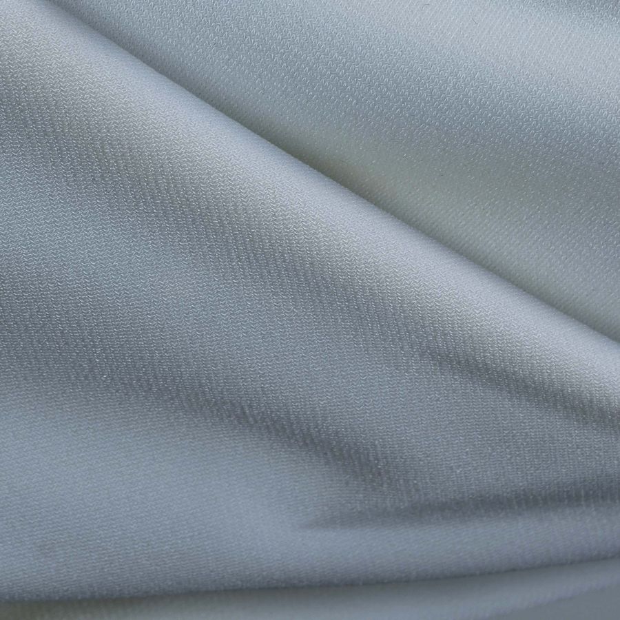 La tela base es el Punto Sintético con Spandex - Support, una tela de punto compuesta por un 95% de poliéster y un 5% de elastano, con un gramaje de 237 gr/m2 y un ancho de 152 cm. El color liso impreso es un azul del golfo, que se obtiene con una tinta cyan con un valor de 26, una tinta magenta con un valor de 7, una tinta yellow con un valor de 5 y una tinta black con un valor de 0, lo que se traduce en un valor de CMYK de 26 7 5 0. Este color secundario es un tono de azul suave y relajado, que es ideal para crear un ambiente tranquilo y fresco. Se combina particularmente bien con tonos blancos, grises y beige.