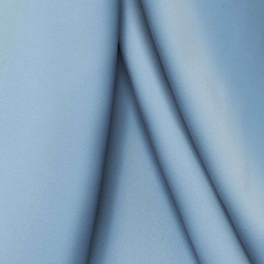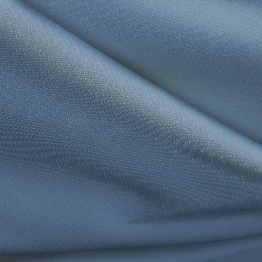La tela base es un punto sintético con spandex llamado Support, compuesto por un 95% de poliéster y un 5% de elastano, con un gramaje de 237 gr/m2 y un ancho de 152 cm. El color liso impreso en la tela es un Azul Vaquero, con tintas de cian, magenta, amarillo y negro (56, 29, 11, 1) y un CMYK de 56 29 11 1. Este color es evocador y versátil, ya que se relaciona con la frescura del agua y la profundidad del cielo. Complementa perfectamente una amplia gama de tonos azules, marrones, beige y blanco.
