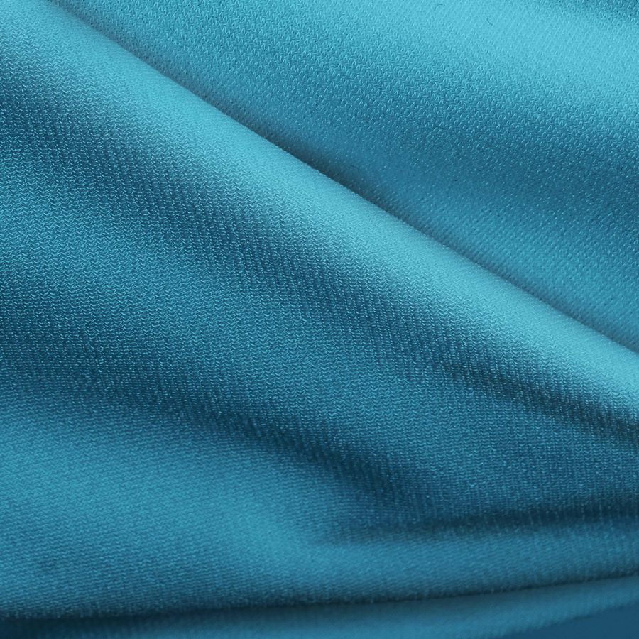 La Tela de Punto Sintético con Spandex - Support es una tela de 237 gr/m2, compuesta principalmente por poliéster y elastano que, combinados, le otorgan elasticidad, suavidad y un tacto agradable. En cuanto al color liso impreso, se trata de un tono azul hielo glacial cuya mezcla de tinta cyan, magenta, yellow y black da como resultado un CMYK de 79 33 25 6. Este color puede ser considerado como un color frío y tranquilo, ideal para la ropa de noche o de estar en casa, que transmite calma y serenidad. Además, combina muy bien con otros tonos claros y neutros como el blanco, el gris o el rosa palo.