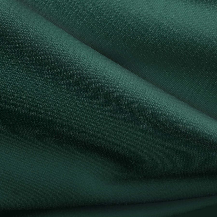 La tela base es el Punto Sintético con Spandex - Support, con una composición de 95% poliéster y 5% elastano, un gramaje de 237 gr/m2 y un ancho de 152 cm. El color liso impreso es de un verde bosque oscuro, con un CMYK de 91 50 73 66. Este color es simbólicamente asociado con la naturaleza y la tranquilidad, y técnicamente puede ser combinado con tonos neutros como el blanco, el beige y el gris, así como con tonos cálidos como el rojo y el naranja.