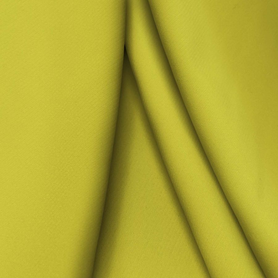 La tela base es el Punto Sintético con Spandex - Support, compuesta de 95% poliéster y 5% elastano, con un gramaje de 237 gr/m2 y 152 cm de ancho. El color liso impreso es verde con tonalidades de latón, con valores CMYK de 31, 21, 90, 5. El color verde simboliza la naturaleza, armonía y frescura, mientras que el latón le da un toque metálico y elegante. Este color combina especialmente bien con tonalidades marrones, beige y dorado. La tela está impresa en una sola cara por impresión digital textil.