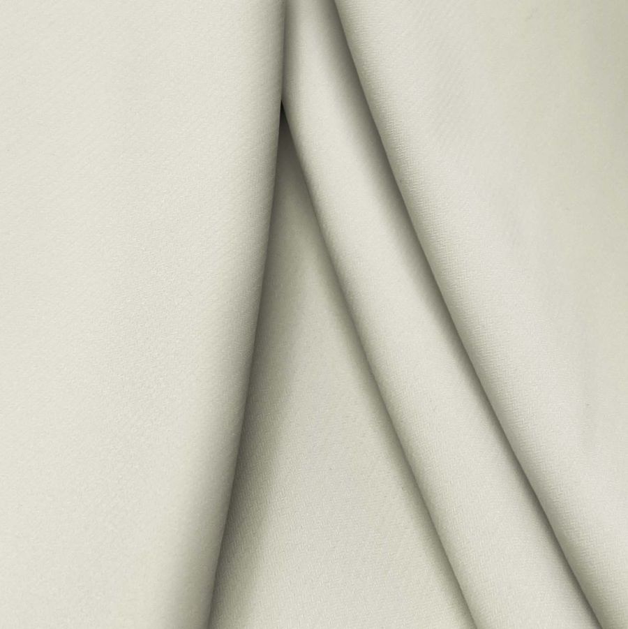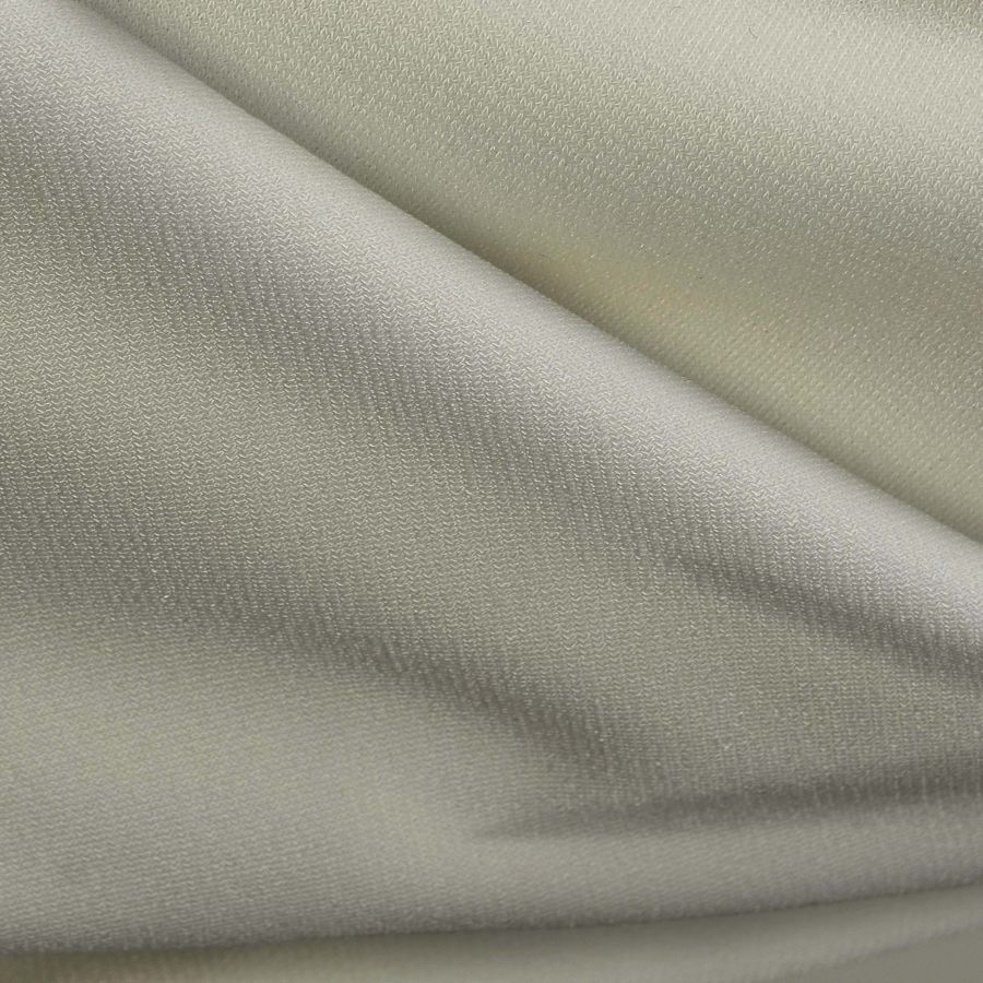 La tela base es el Punto Sintético con Spandex - Support, compuesta por 95% poliéster y 5% elastano, pesa 237 gr/m2 y tiene un ancho de 152 cm. En cuanto al color liso impreso, se trata de un tono crudo con matices de chocolate blanco, lo que se refleja en el contenido de CMYK (9 5 22 0). El color crudo ofrece una mezcla equilibrada entre tonalidades blancas y amarillentas, lo que evoca una sensación cálida. Por su parte, el matiz de chocolate blanco aporta una tonalidad beige, beige grisácea o crema, según la proporción. Este color secundario se combina muy bien con tonos de marrón oscuro, negro y otros tonos de beige, logrando una sensación de elegancia y sofisticación.