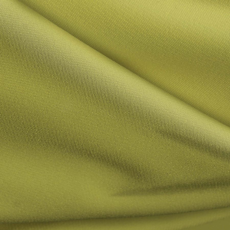 La textura de la tela es suave y elástica, lo que la hace confortable y perfecta para prendas ajustadas al cuerpo. La tela es opaca visualmente, lo que permite que el color impreso tenga un gran contraste y brillo. En cuanto al color amarillo impreso, este aporta intensidad y viveza al diseño de la prenda al ser un tono amarillo brillante y enérgico. Además, al ser impreso en una sola cara, no se corre el riesgo de que el color se desgaste o pierda intensidad.