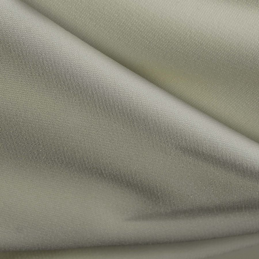 La tela base, Punto Sintético con Spandex - Support, es un tejido de punto compuesto por 95% poliéster y 5% elastano con un gramaje de 237 gr/m2 y un ancho de 152 cm. El color liso impreso en esta tela es Verde Sabio, con un CMYK de 22 12 32 0. Este tono es una mezcla de verde suave y gris claro, lo que le confiere un aspecto sereno y natural. El color secundario combina bien con otros tonos suaves, como rosa pálido, beige y blanco.