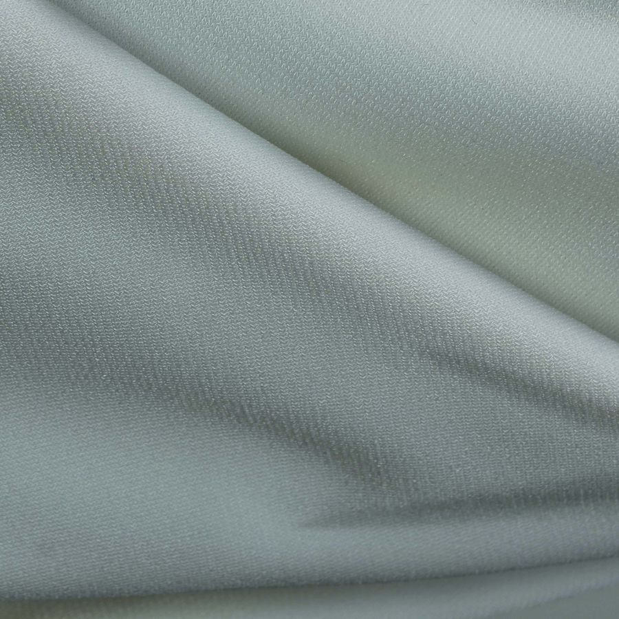 La tela base es Punto Sintético con Spandex - Support, de composición 95% POLIÉSTER y 5% ELASTANO, con gramaje de 237 gr/m2 y ancho de 152 cm. El color liso impreso es Verde Azulado (CMYK 26 4 17 0), lo que le da una apariencia refrescante y tranquila al tejido. El color se combina muy bien con tonos neutros, como blancos y grises, así como con tonos más intensos como el rosa oscuro y el mostaza.