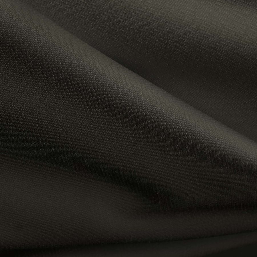 La tela base de esta prenda es Punto Sintético con Spandex - Support, un tejido de punto compuesto por 95% de poliéster y 5% de elastano. El gramaje de la tela es de 237 gr/m2 y tiene un ancho de 152 cm. El color liso impreso en esta tela es Negro Medianoche, con un CMYK de 72 65 75 84. Este color tiene una tonalidad oscura y profunda, con una gran elegancia y sofisticación, ideal para prendas de noche y ocasiones formales. Es un color que combina muy bien con tonos plateados, dorados y rojos oscuros, creando un look armonioso y elegante.