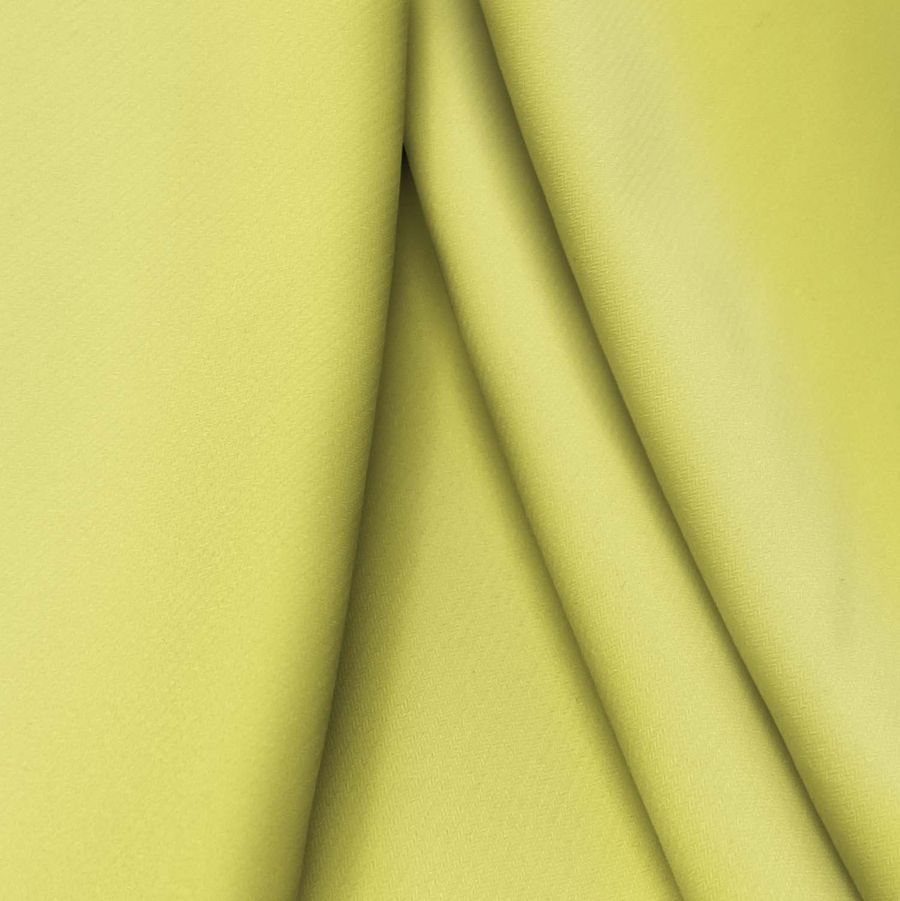 La tela base es el Punto Sintético con Spandex - Support, compuesta por 95% poliéster y 5% elastano, con un gramaje de 237 gr/m2 y un ancho de tela de 152 cm. El color liso impreso es un vibrante amarillo plátano, con una combinación de colores CMYK de 13 1 70 0. El color secundario es el amarillo, que simboliza la energía y el sol. Se combina perfectamente con colores azules o verdes para crear un contraste armonioso.