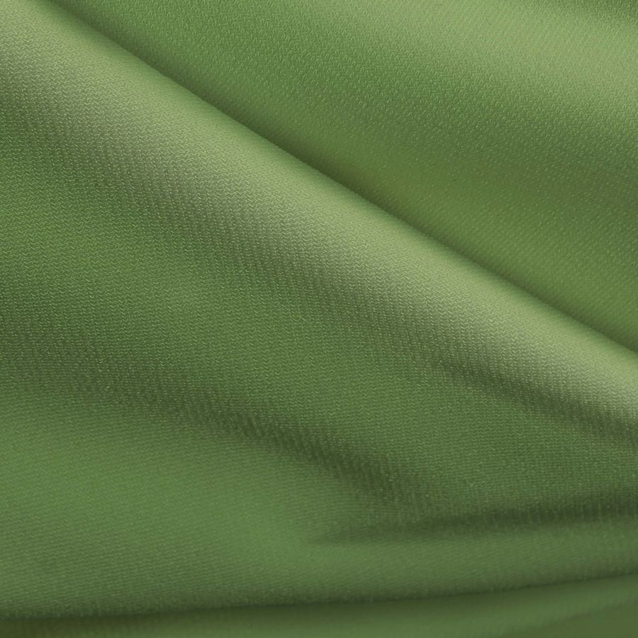 La tela base es el Punto Sintético con Spandex - Support, compuesta por un 95% de poliéster y un 5% de elastano, con un gramaje de 237 gr/m2 y un ancho de 152 cm. El color liso impreso es un verde intenso, similar al tono del billete de un dólar, cuyo CMYK es de 52 9 72 0. Este color representa la frescura de la naturaleza y tiene una gran versatilidad en la moda y la decoración. Además, este verde combina armoniosamente con tonos beige, marrones y blancos. Cabe destacar que la tela está impresa con el color liso a una sola cara por impresión digital textil, lo que confiere una gran nitidez y durabilidad al color.