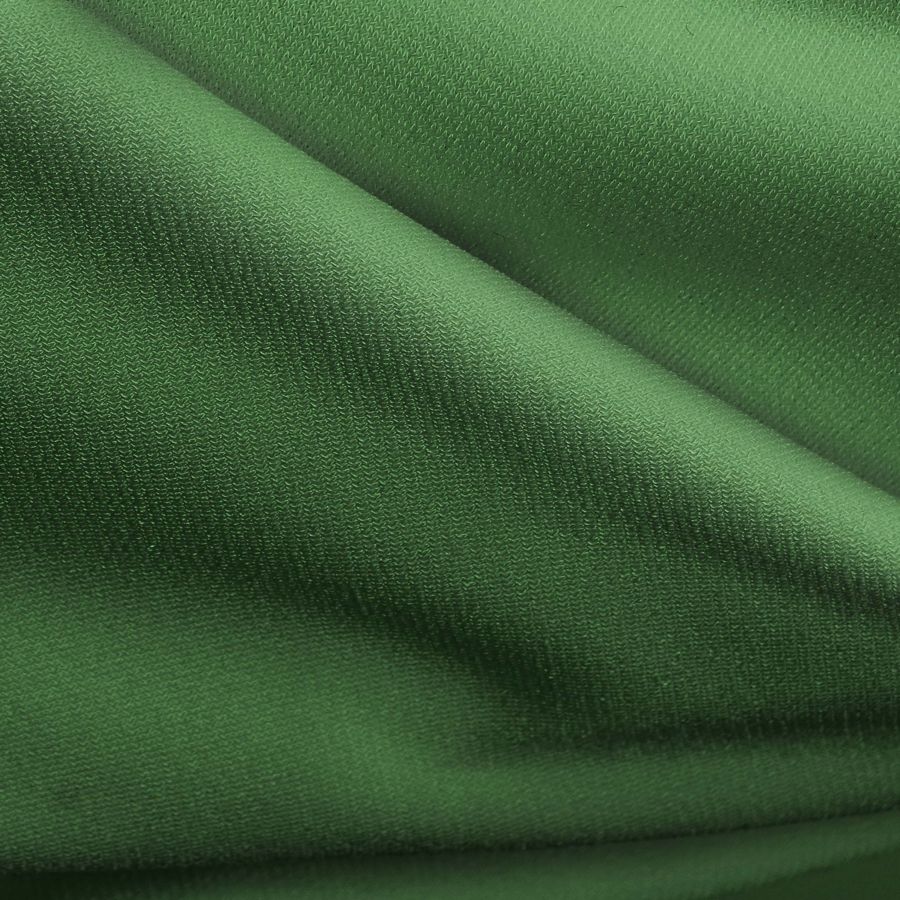 Punto Sintético con Spandex - Support es una tela de punto compuesta por 95% de poliéster y 5% de elastano, con un gramaje de 237 gr/m2 y un ancho de 152 cm. El color liso impreso es verde alga, con una tinta cyan del 78, magenta del 37, yellow del 91 y black del 31, reflejando un CMYK de 78 37 91 31. Este color se presenta como un tono verde oscuro, que evoca a la naturaleza y lo orgánico. El color verde alga combina especialmente bien con tonos tierra, mostaza y beige.
