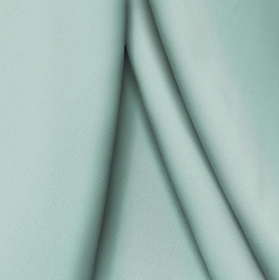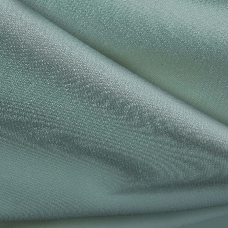 La tela base, Punto Sintético con Spandex - Support, tiene una composición de 95% poliéster y 5% elastano, lo que le otorga una textura suave y elástica. El gramaje es de 237 g/m2 y su ancho de 152 cm. El color liso impreso en esta tela es Verde Menta, y de acuerdo al contenido del CMYK, su composición es de 43% de tinta cian, 8% de tinta magenta, 29% de tinta amarilla y 0% de tinta negra. Este color mint es visualmente opaco y combina muy bien con tonalidades rosadas, azules, beige y dorados.
