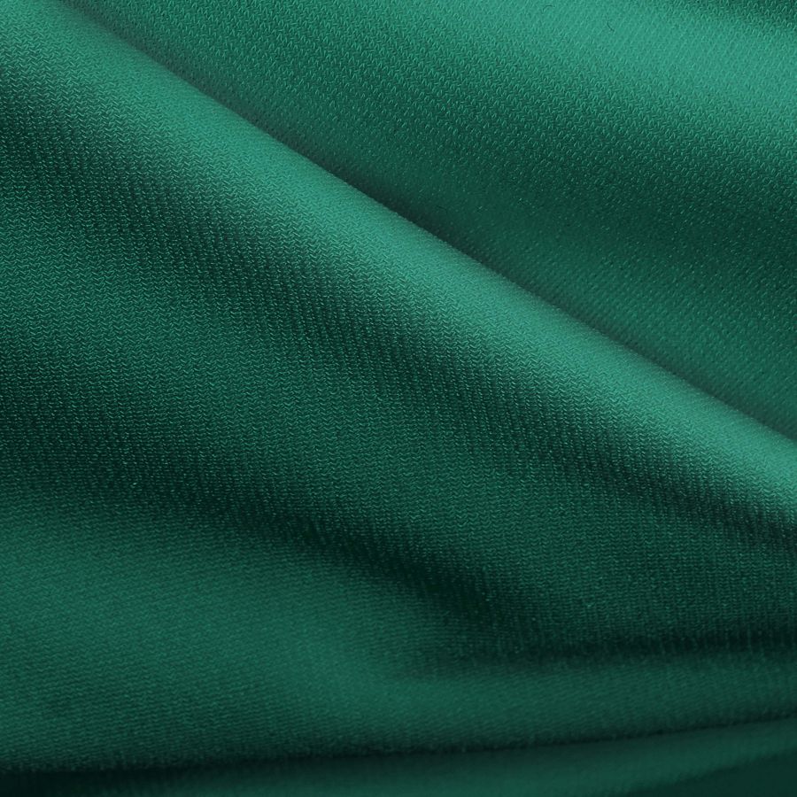 La tela base Punto Sintético con Spandex - Support, con una composición de 95% poliéster y 5% elastano, tiene un gramaje de 237 gr/m2 y un ancho de 152 cm. El color liso impreso es un verde mar profundo con un CMYK de 91 39 73 41. Este color es simbólicamente asociado con la naturaleza, la armonía y la tranquilidad, al mismo tiempo que es un color intenso y sofisticado. Combina maravillosamente con tonos dorados, tierras y neutros, así como con tonos de rosa pastel y mostaza.