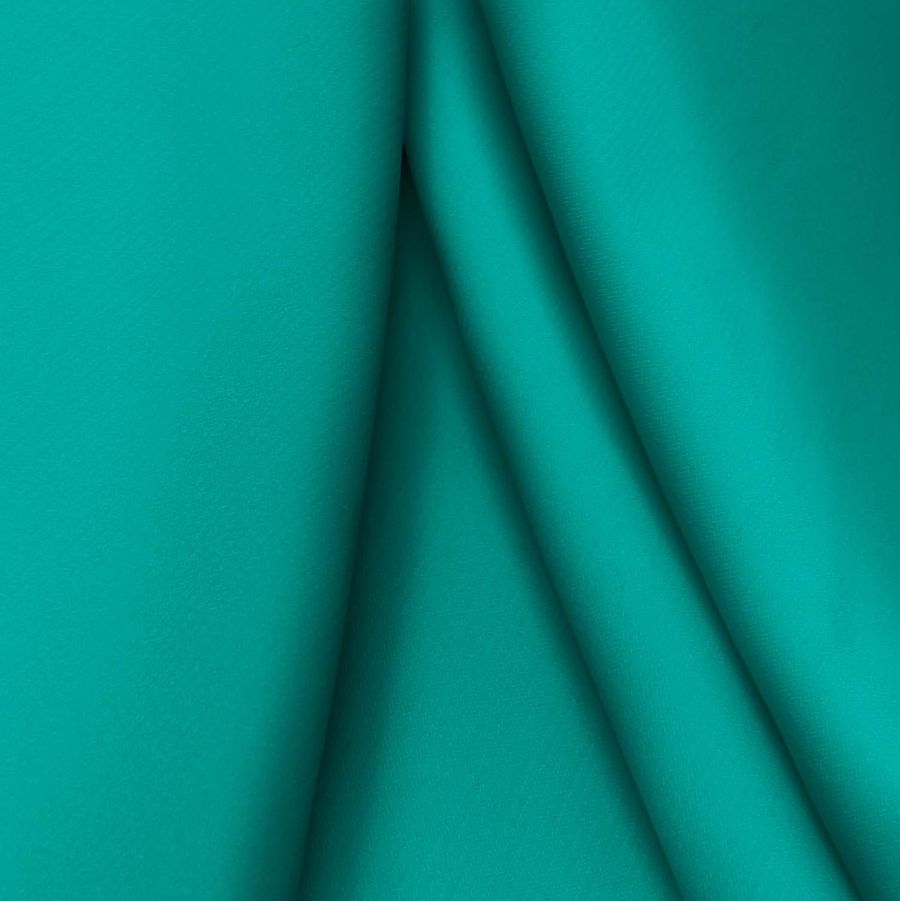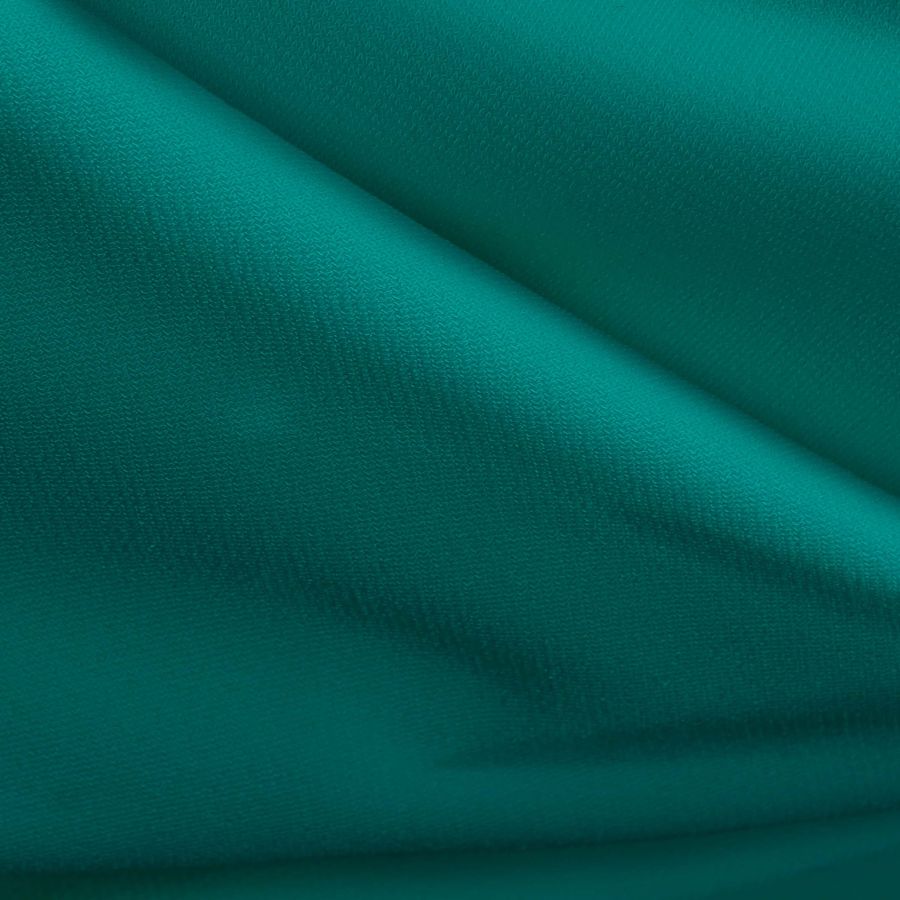 La tela base es el Punto Sintético con Spandex - Support, con una composición del 95% de poliéster y un 5% de elastano. Su gramaje es de 237 gr/m2 y su ancho de tela alcanza los 152 cm. Su color liso impreso es un verde-azulado con un CMYK de 84 25 53 9, lo que indica una predominancia de la tinta cyan. Este color secundario se caracteriza por ser vibrante y refrescante, transmitiendo serenidad, frescura y tranquilidad. Este color combina bien con tonalidades como el blanco, el negro, el gris y los tonos nude en gamas pastel.