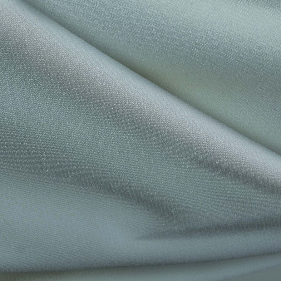 La tela base, Punto Sintético con Spandex - Support, es una tela de punto compuesta por un 95% de poliéster y un 5% de elastano con un gramaje de 237 gr/m2 y un ancho de 152 cm. El color liso impreso, de un Powder Blue, se consigue mediante sublimación y su CMYK es 33 5 17 0. La tela tiene un tacto suave y un aspecto visual opaco, siendo además elástica. En cuanto al color impreso, combina perfectamente con el blanco y el negro, así como con tonos grises, tierra y otros azules pastel.