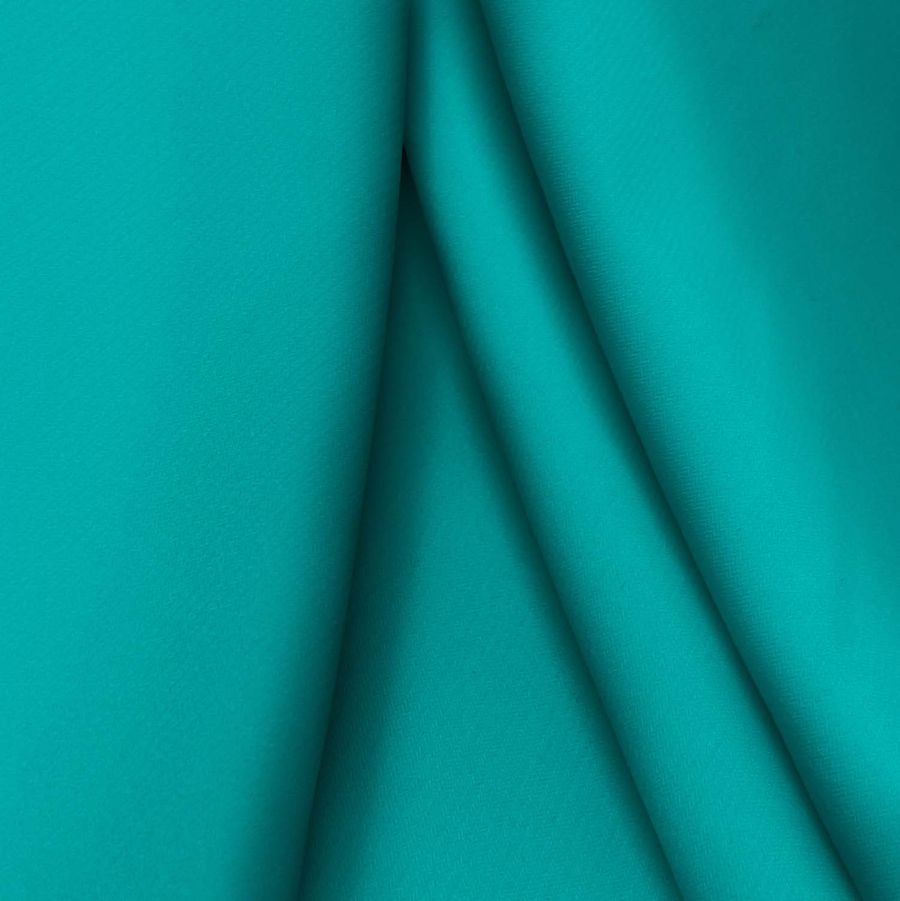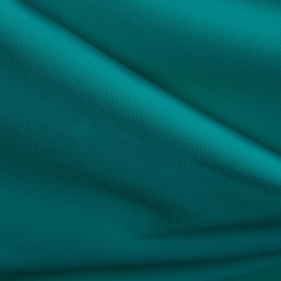 La tela base es el Punto Sintético con Spandex - Support, compuesta por un 95% de poliéster y un 5% de elastano, con un gramaje de 237 gr/m2 y un ancho de 152 cm. El color liso impreso en esta tela es un verde azulado, con un CMYK de 82 25 45 8. Este color se caracteriza por ser un tono vibrante y fresco, que puede combinar perfectamente con blancos y otros tonos verdes.